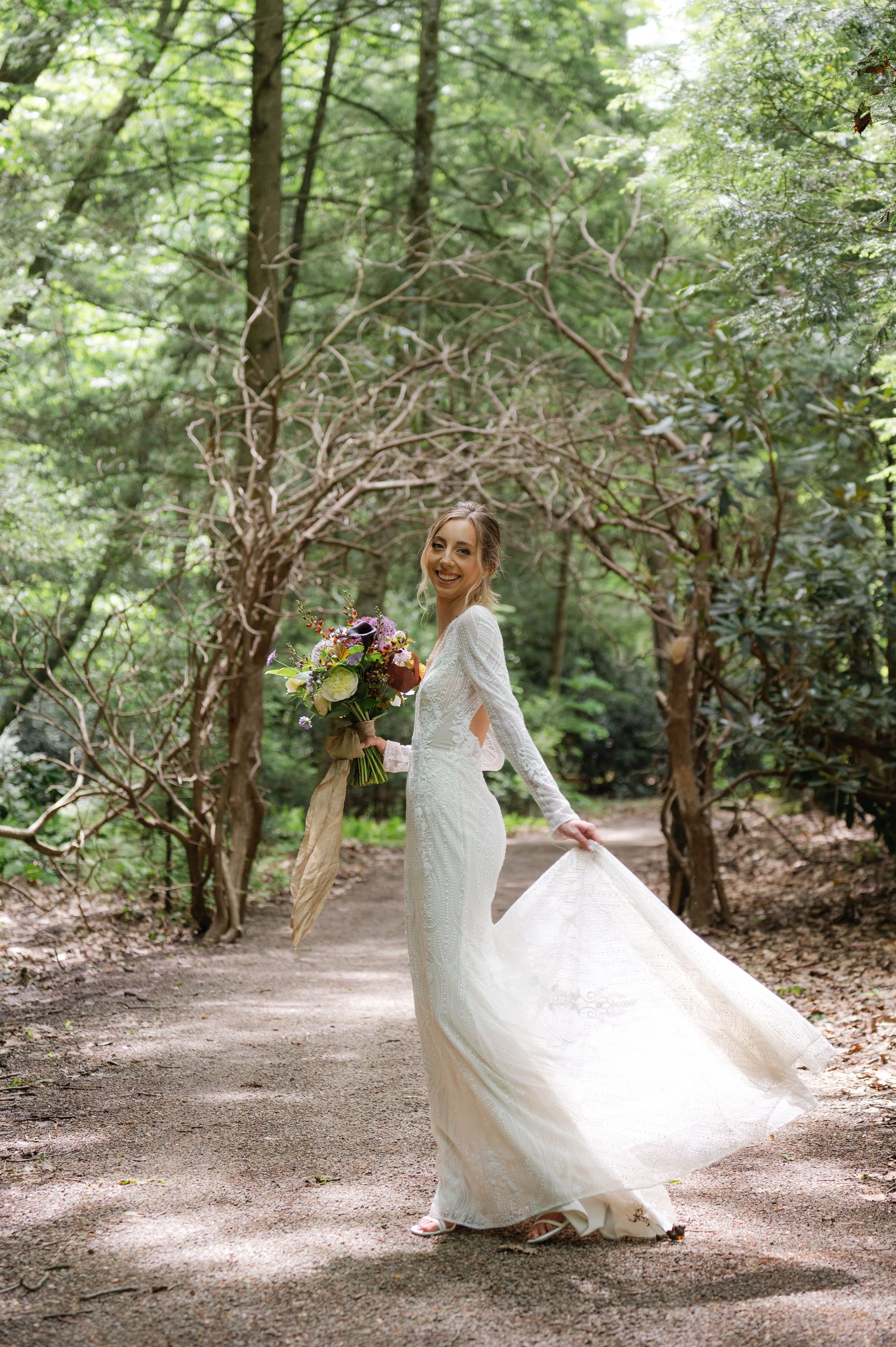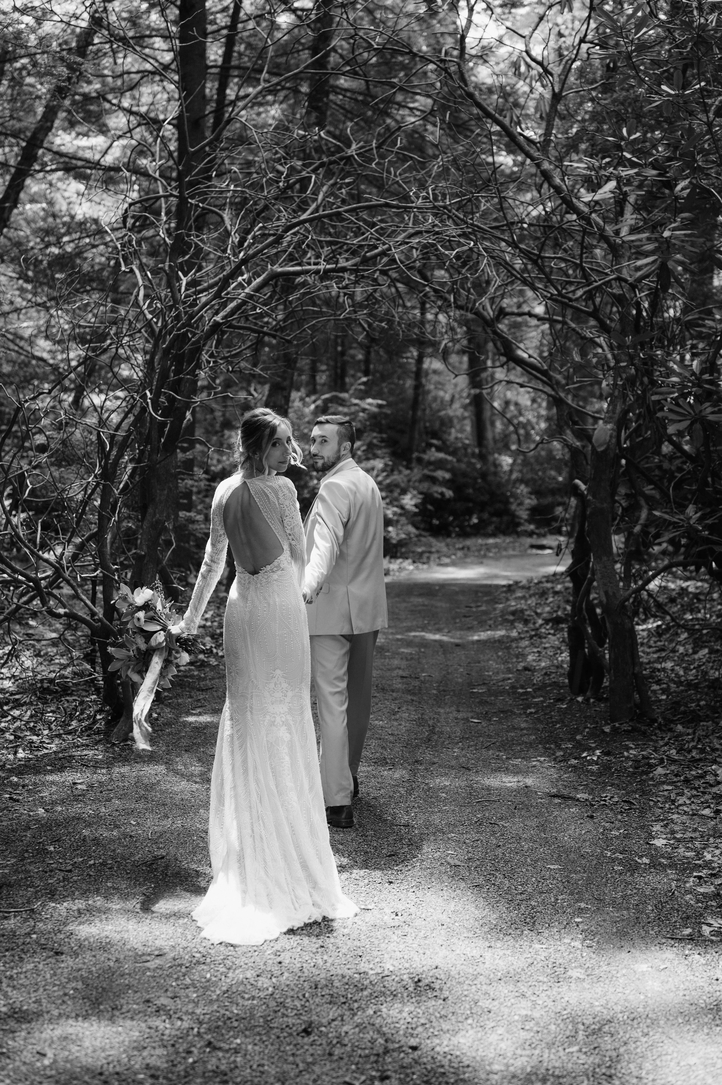 Imagine waking up slow, barefooted and peaceful. You’re greeted by rhododendron shadows dancing overhead and the sound of a wandering stream right outside your tent. You walk the path to the family owned venue just down the way. Friendly farm cats greet you along the way and the mountain laurel glistens with morning dew. You wash up and get ready for hair and makeup while your partner showers and makes you your favorite breakfast. The familiar smell of bacon and blueberry pancakes drifts your way, and you can hear the birds singing just outside the open kitchen doors. You get to marry this person today. Here, amongst the pines. With only the birds and the butterflies as your witness. What could be more tranquil, more memorable than that?